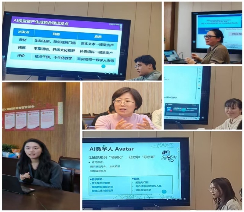 活动包括政策宣讲、案例分享和应用交流三个环节。在政策宣讲环节,钱敏娟老师结合教育部及相关部委近期发布的文件,介绍了多部门推进教育数字化、实施“人工智能+”行动的主要内容,并结合学校新近颁布《人工智能赋能教育教学行动计划》的关键要点,阐释了师生人工智能素养提升与教学数字化转型的重点方向。在案例分享环节,四位教师结合教学实践,展示了人工智能在课堂教学与课程建设中的多样化应用。吴芮姝老师介绍了AI数字人在课后个性化学习中的应用实践,分析了其在促进学习互动与提升自主学习方面的优势与不足;薛文洁老师分享了多个AI教学助手在实现课内外学习衔接与协同学习中的应用经验;殷博涵老师聚焦AI以文生图、以图生成视频的技术流程,探讨了视觉生成工具在丰富教学语境、拓展学生学习视野方面的价值;郭庆华老师结合提示词设计框架,如 COSTARCRISPECRAFT,展示了人工智能在课程评估与任务设计中的实践案例,分析了结构化提示词在提高 AI 辅助教学科学性与有效性方面的作用。这些案例充分展示了教师对人工智能教学应用的积极探索,为学院教学创新提供了新思路和新路径。在应用交流环节,教师们围绕“如何合理使用AI”“如何在数字赋能课程建设中体现教师的核心作用”等话题展开热烈讨论,现场气氛活跃,交流深入。